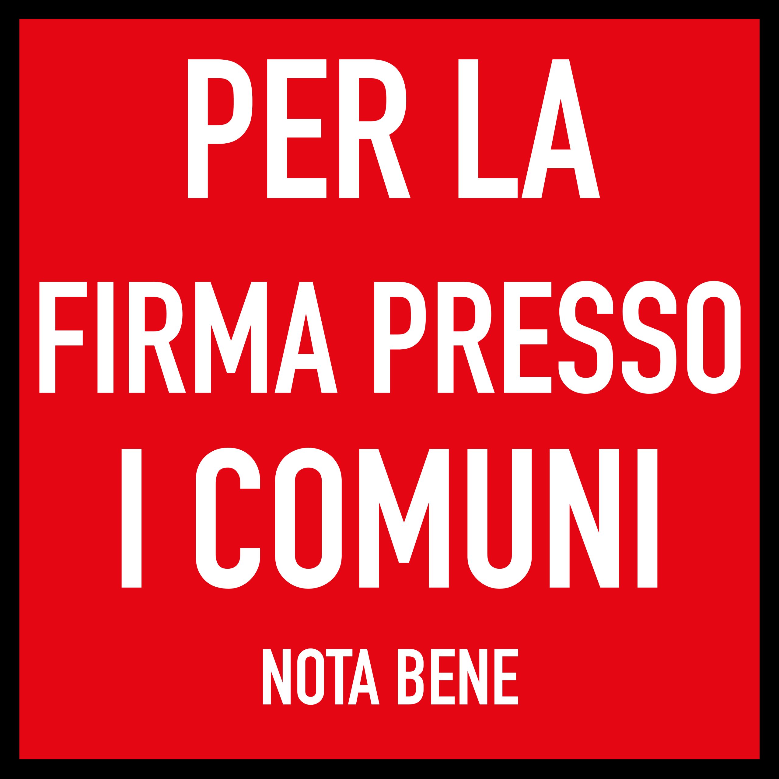 2. SONO STATE INVIATE LE PEC CON I MODULI PER LA RACCOLTA FIRME A TUTTI I COMUNI ITALIANI DELLE REGIONI INDICATE QUI DI SEGUITO. QUALORA UN COMUNE NON ABBIA PREVISTO DI SVOLGERE QUESTO SERVIZIO SEGNALATECELO A INFO@INSIEMELIBERI.ORG O VIA MESSAGGIO WHATSAPP AL +39 371 4346163 E, SE IL PROBLEMA NON VENISSE RISOLTO, VI INVITIAMO A RECARVI NEL COMUNE LIMITROFO O PRESSO I PUNTI DI RACCOLTA FIRME SUL TERRITORIO.